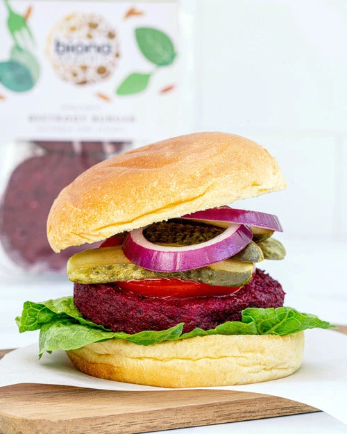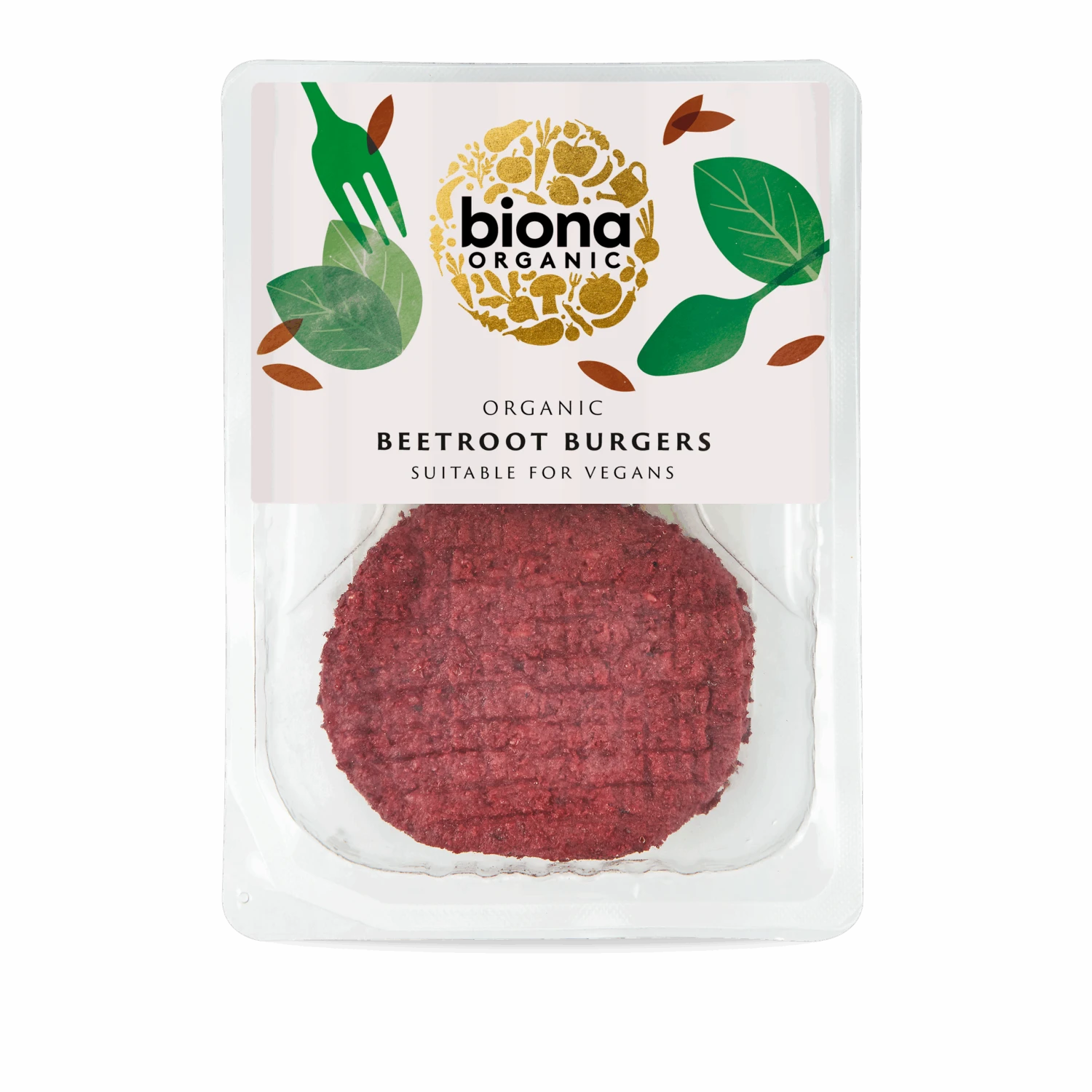 Biona Beetroot Burger is made with vibrant beetroot, oats and seasoned with an array of spices. Perfect for barbecuing and grilling, try this hearty burger in a bun with all your favourite toppings.