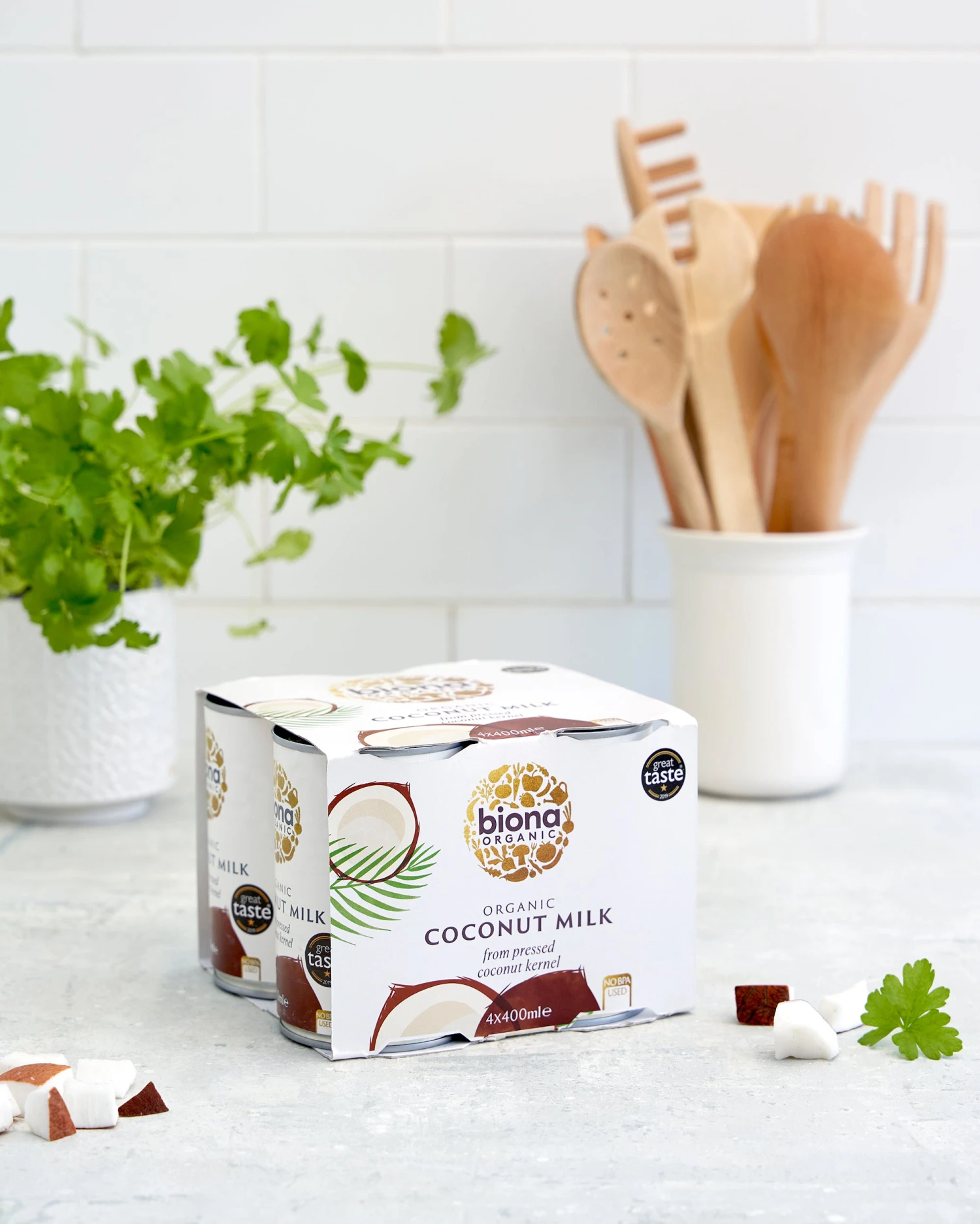 Biona Organic Coconut Milk is a firm family favourite, and is now available in a handy 4 pack! Our classic coconut milk is free from emulsifiers and made from the finest coconuts, which are strictly harvested without the use of monkeys. Use it as a natural dairy alternative, or to add richness to curries and in baking.