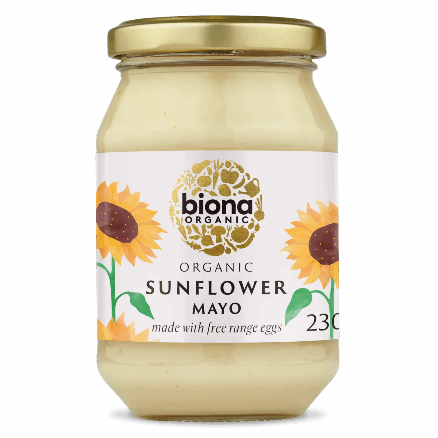 We carefully blend together sunflower oil with organic, free-range eggs sourced from ethical farms to create this tempting Mayonnaise. Our Biona Organic Mayonnaise with Sunflower Oil is smooth, creamy, and simply bursts with flavour, making it perfect for use as a salad dressing, spread or sauce.