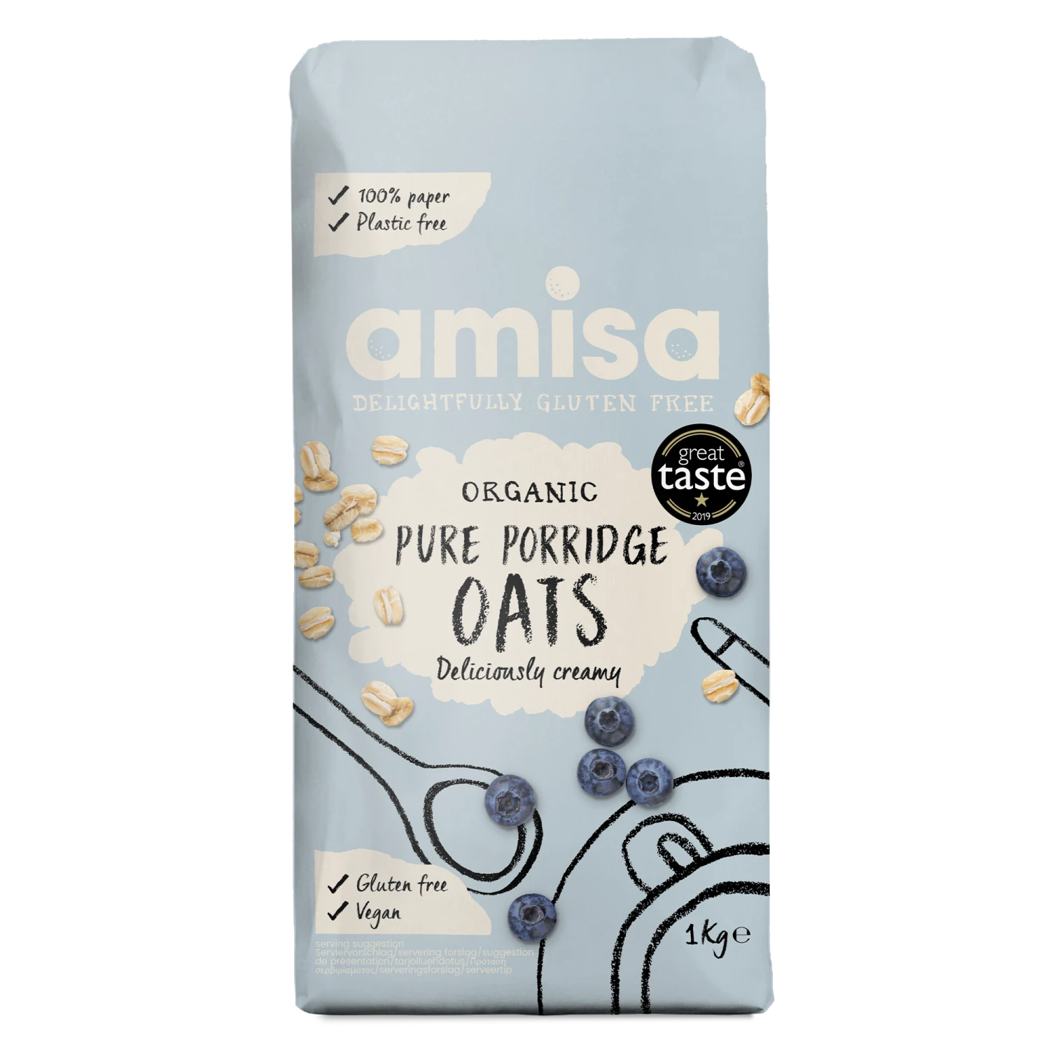 Amisa Organic Pure Porridge Oats, now available in 1kg paper bags.