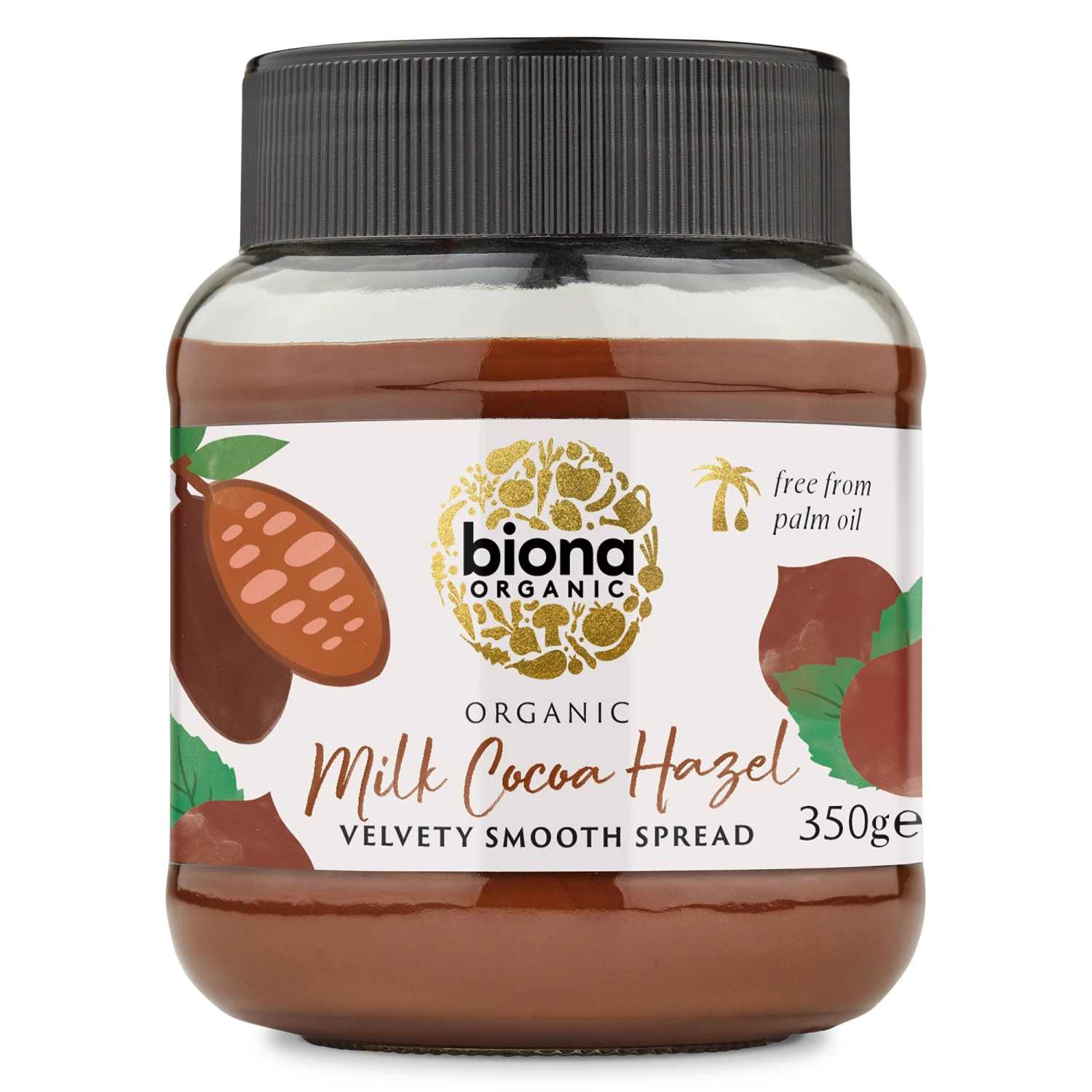 Enjoy a chocolate spread with a hazelnut twist with our Biona Organic Milk Cocoa Hazel Spread. Perfect for chocoholics young and old, this smooth, milk chocolate spread is ethically produced, and can be enjoyed everywhere from toast to cakes and smoothies.