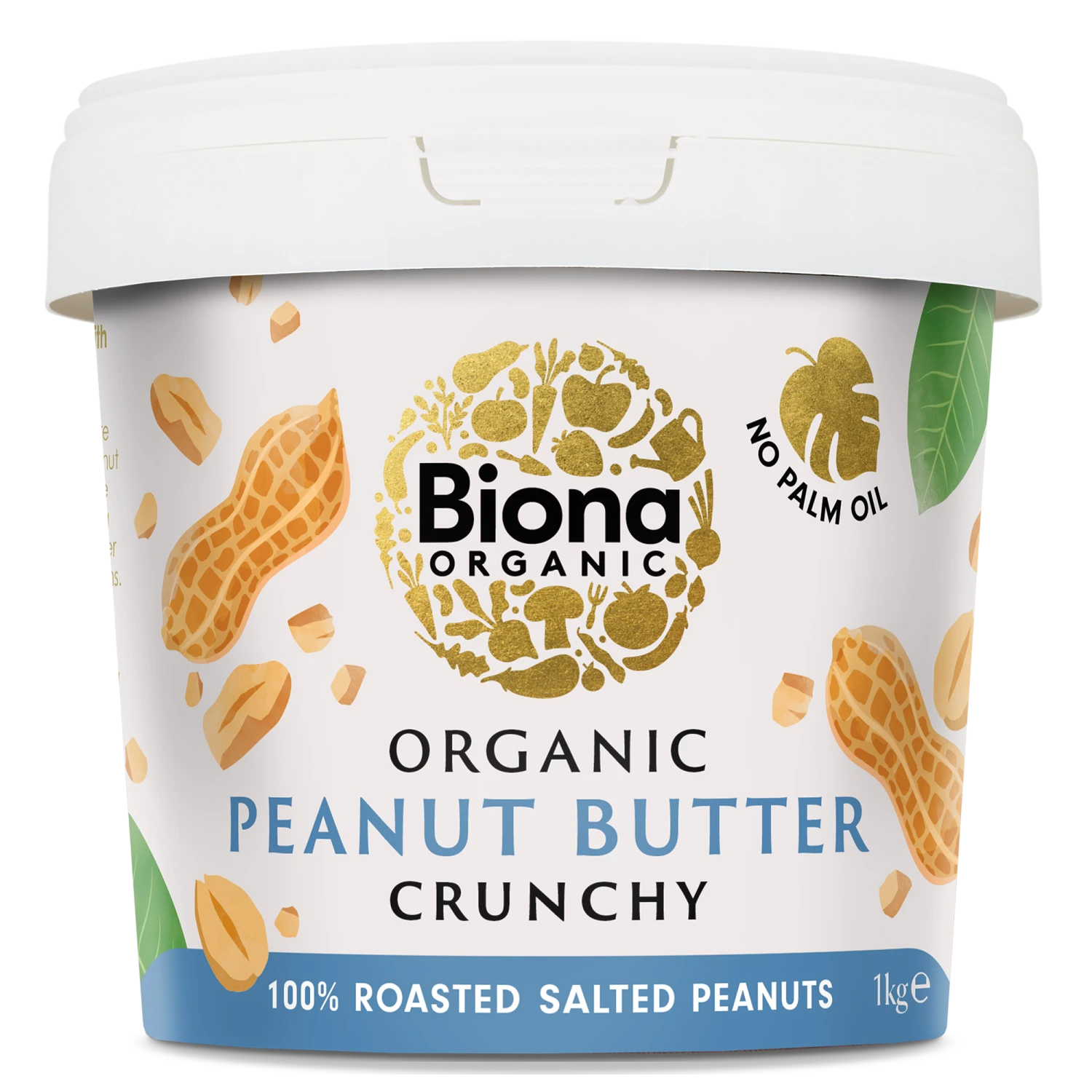 Biona Organic Crunchy Peanut Butter is milled from small batches of freshly roasted certified organic peanuts, a touch of sea salt – and that’s it! No sugar, palm fat or emulsifiers, only the whole nuts which means you receive all their nutritional goodness and creamy taste. Our Crunchy Peanut Butter has a wonderful flavour and is a great source of protein. With a satisfying mix of velvety consistency and chunky pieces of peanut, it is distinctive in texture, wholesome and fulfilling. Not to mention, energy rich! Spread over fresh, hot toast; dollop onto porridge, stir into yoghurt, smoothies or add to cookie dough in baking… Nut butter addicts will agree, there is always a place for peanut butter! Nut oil may be subject to separation- simply stir to restore its natural consistency and enjoy! Biona Peanut Butter is available as both salted and unsalted smooth and crunchy (250g / 500g & 1kg). Love nut butters? Our range includes cashew nut, hazelnut, almond smooth and crunchy, white almond, coconut almond, coconut peanut and mixed nut butters!