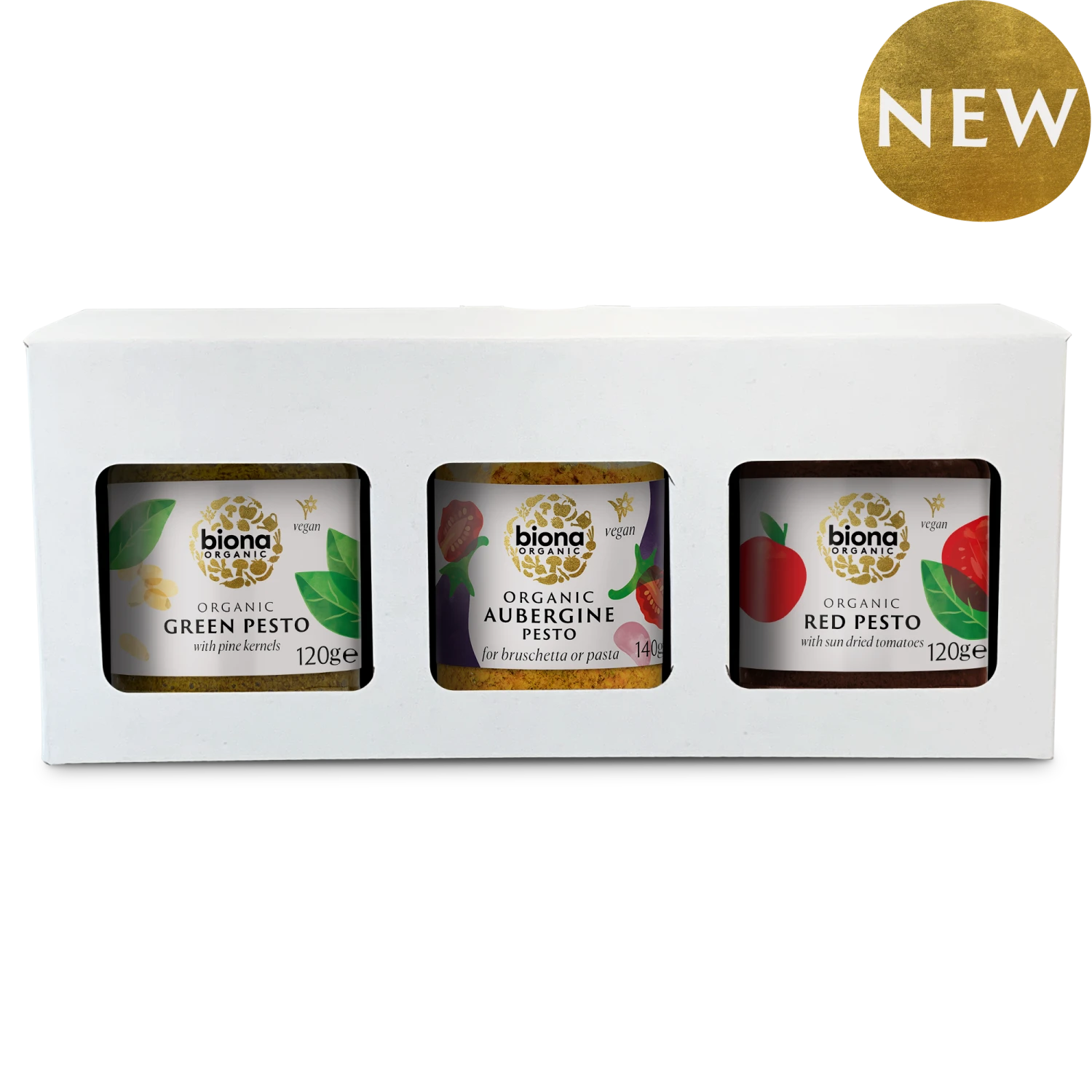 Experience the vibrant flavours of Italy with our Pesto Trio Box, featuring Red Pesto, Green Pesto, and Aubergine Pesto. Crafted from premium, organic ingredients for exceptional taste and quality, each pesto offers a unique culinary delight. Our rich and robust Red pesto is made with sun-dried tomatoes, our classic Green pesto combines fragrant basil and pine kernels, and our newly launched, Aubergine Pesto, is made with smoky aubergines for a unique, unparalleled flavour. Versatile to enhance any dish, from pasta and salads to sandwiches and dips, this pesto selection is crafted entirely with the finest plant-based ingredients, and makes for an elegant gift for food lovers.