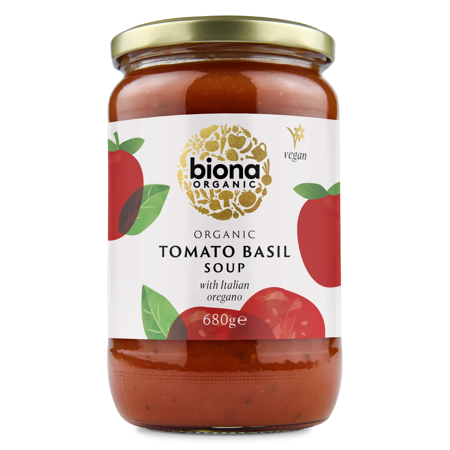 High quality organic gourmet soup in jar. Italian style Tomato Basil Soup is smooth and creamy with aromatic Mediterranean herbs.